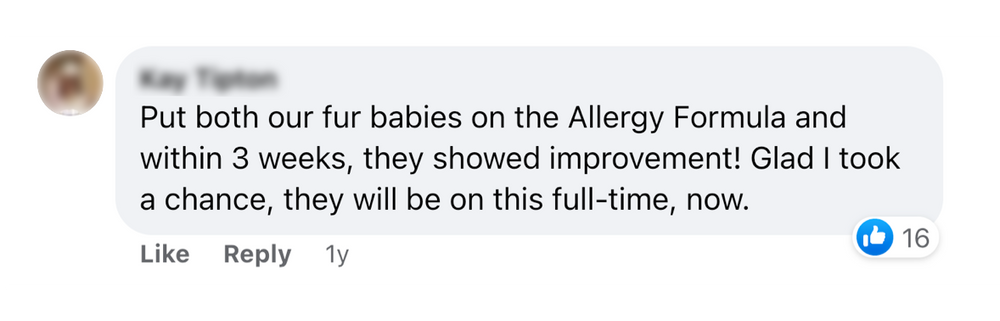 I was skeptical as I when it comes to trying anything for my fur kids. This stuff is working! My 5 year old giant schnauzer has always licked at his paws, he is not doing that any more. Our other giant suffers from ragweed and this helps tremendously. Wish I had found this years ago.
