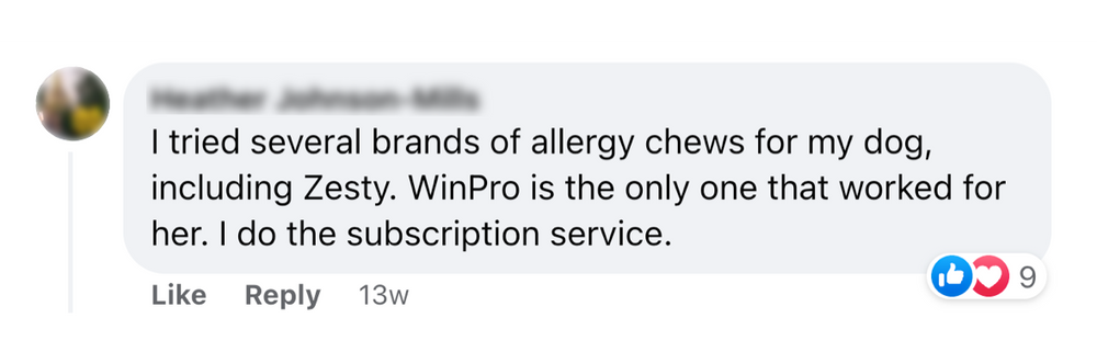"Would I give WINPRO to my dogs? Absolutely! And in fact, I do, because I believe in the product. I have an older lab that has a little bit of arthritis and he struggles to go for walks, he struggles to get up on the bed sometimes, and I can definitely tell the difference when he's on the WINPRO Hip & Joint product and when he's not. When he's on the product, he walks right up beside you, he goes up and down the stairs, he jumps up on the bed, and when he's not on the product, he doesn't like to go for walks and they become much shorter. So would I feed WINPRO to my dogs? Absolutely I would."